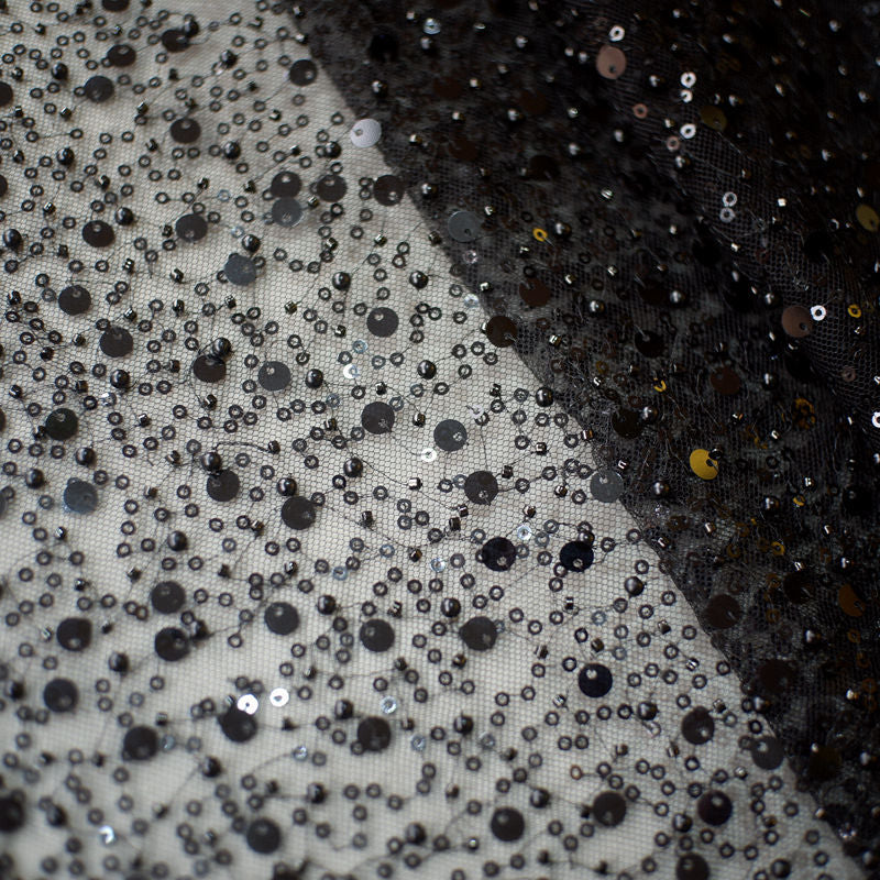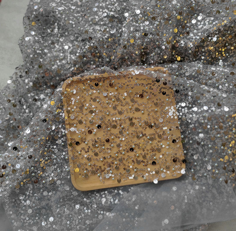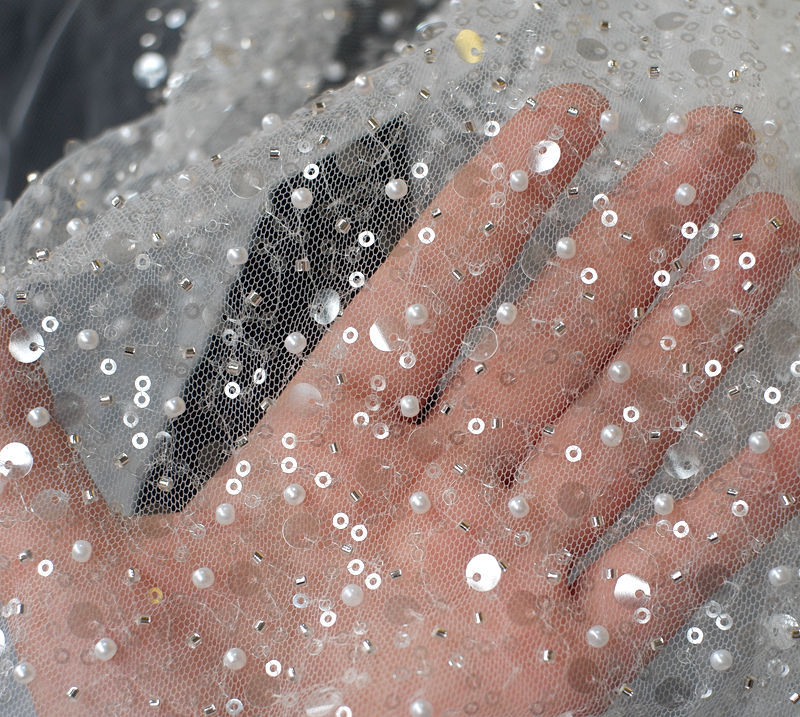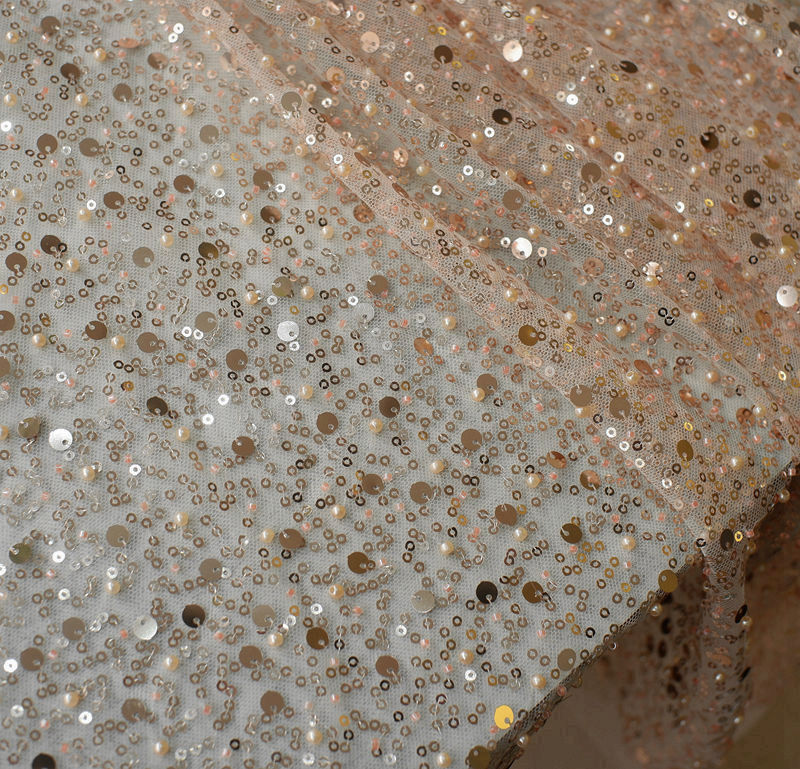 Sequined Pearl Embroidery Lace Asymmetric Single Sleeve Dress
